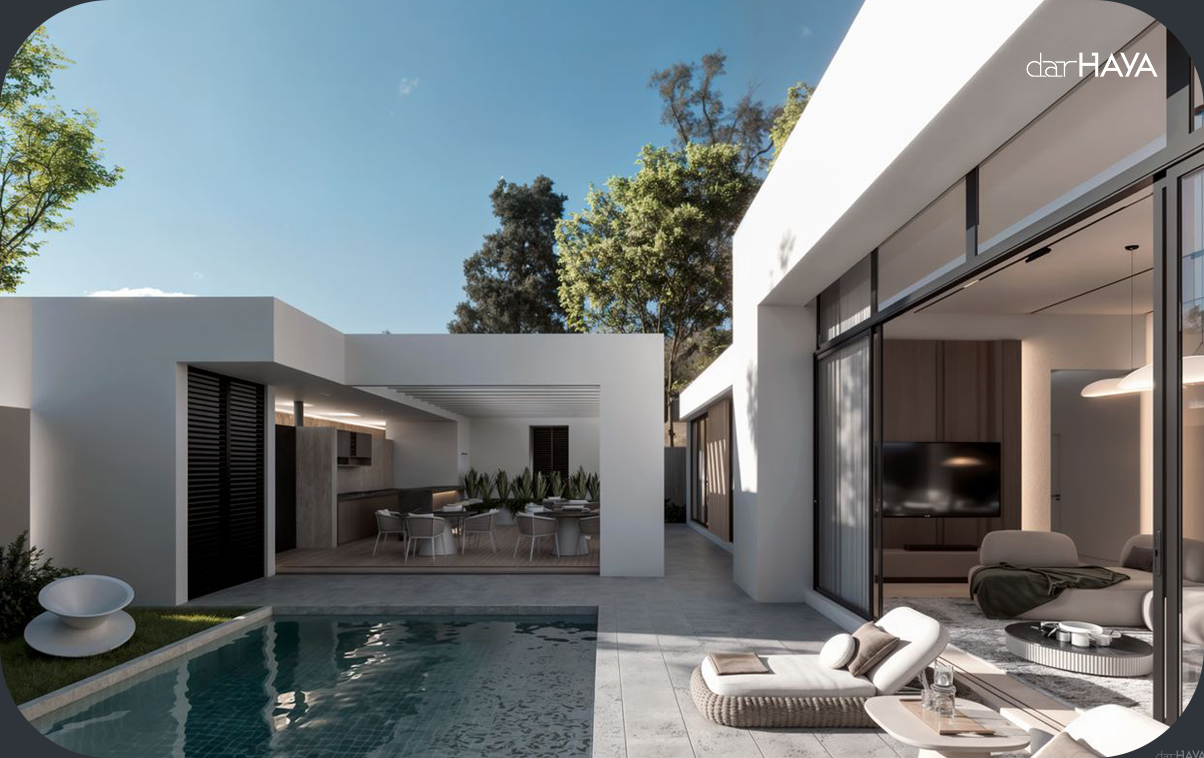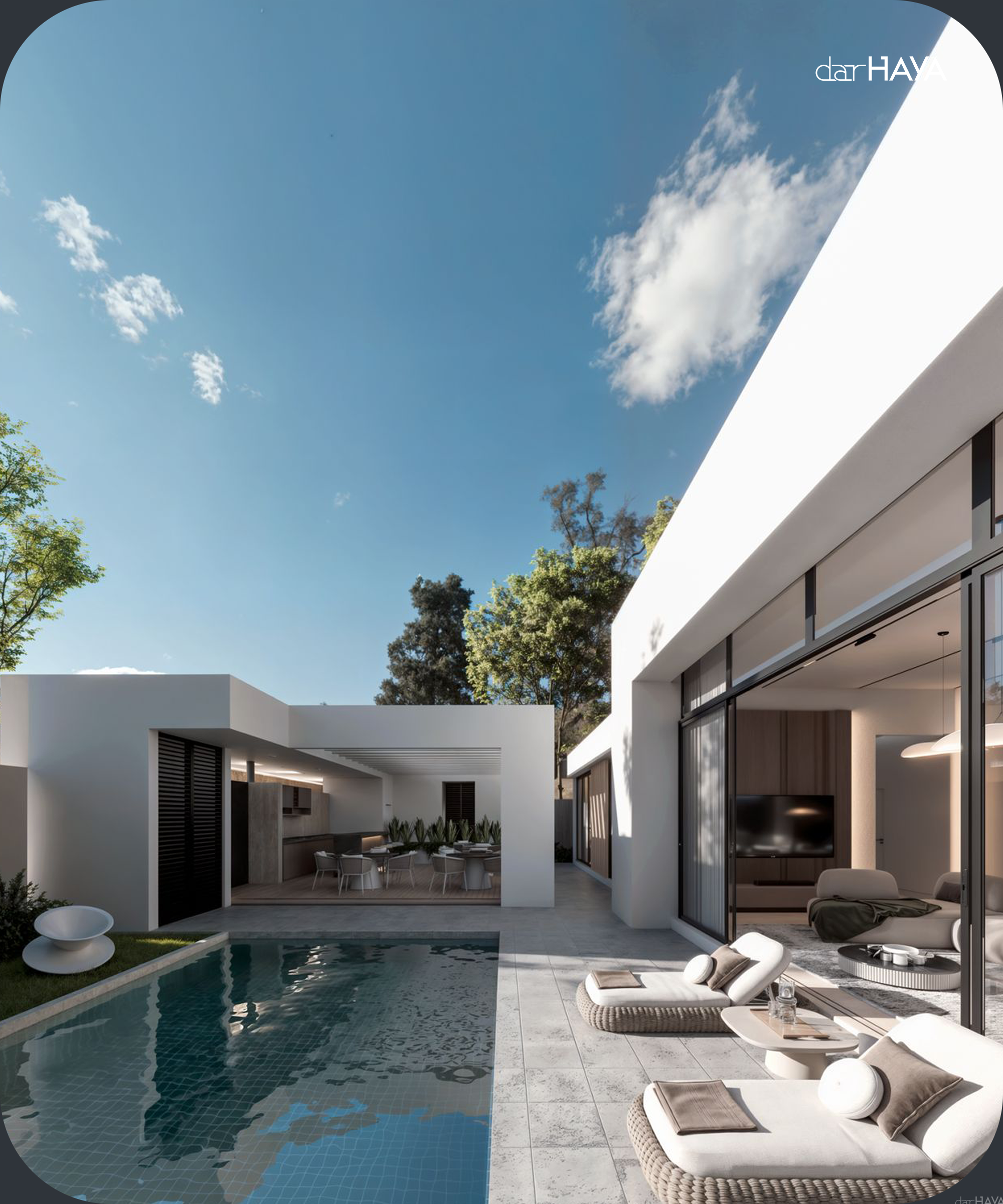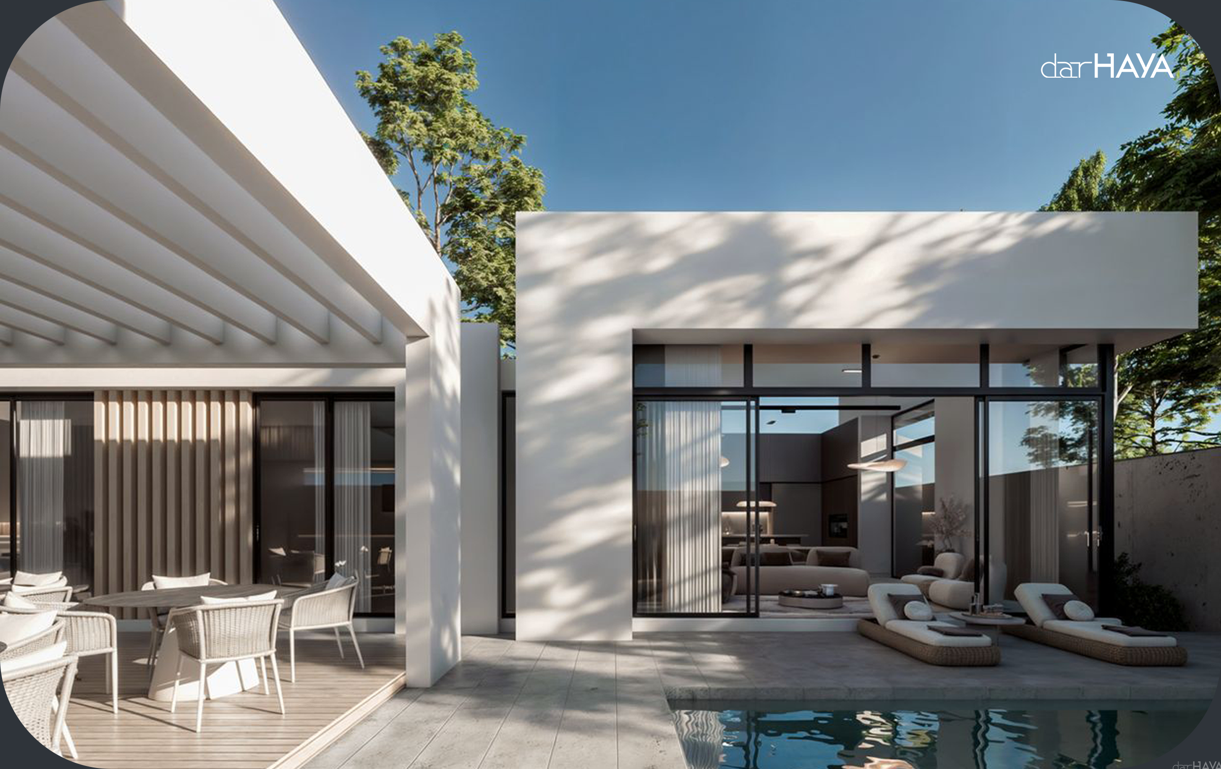 Introducing our stunning one-level terrace villa designed by dar HAYA, where modern design meets luxurious living. This villa embodies a contemporary aesthetic with its sleek lines and open spaces, creating a harmonious blend with the surrounding environment. The standout feature of this villa is its expansive terraces, offering ample outdoor living areas perfect for relaxation and entertainment. Each terrace is thoughtfully designed with high-quality materials, such as natural wood and elegant stone, complemented by lush landscaping that enhances the overall ambiance. Inside, the villa boasts a spacious layout flooded with natural light, showcasing modern amenities and stylish finishes. The living areas are designed for comfort and functionality, making it an ideal space for family gatherings or hosting friends. Each bedroom features its own private terrace, allowing for personal outdoor retreats that enhance the living experience. Sustainability is also at the forefront of this design, with eco-friendly features that promote energy efficiency and a healthier living environment. Located in a serene setting, this terrace villa not only offers luxurious living but also provides the benefits of nature and nearby amenities. Experience the perfect blend of modern design and outdoor living with our exquisite terrace villa by dar HAYA